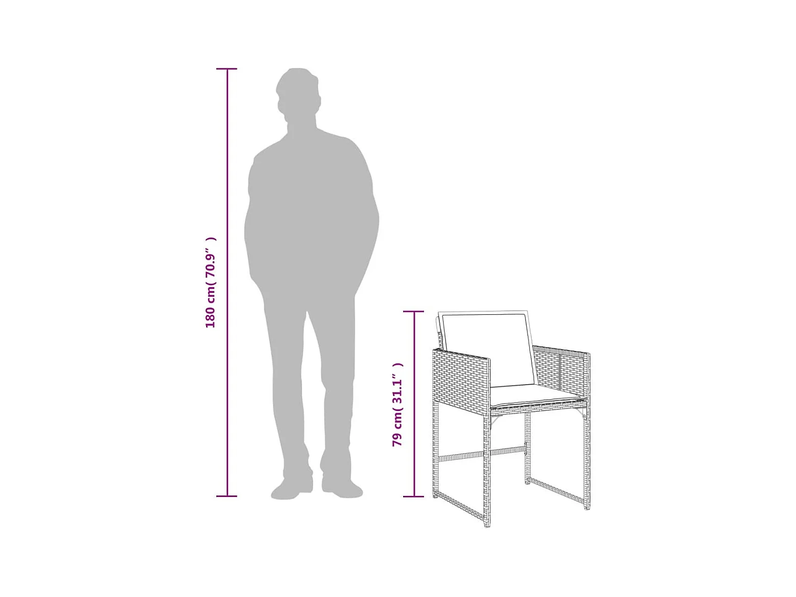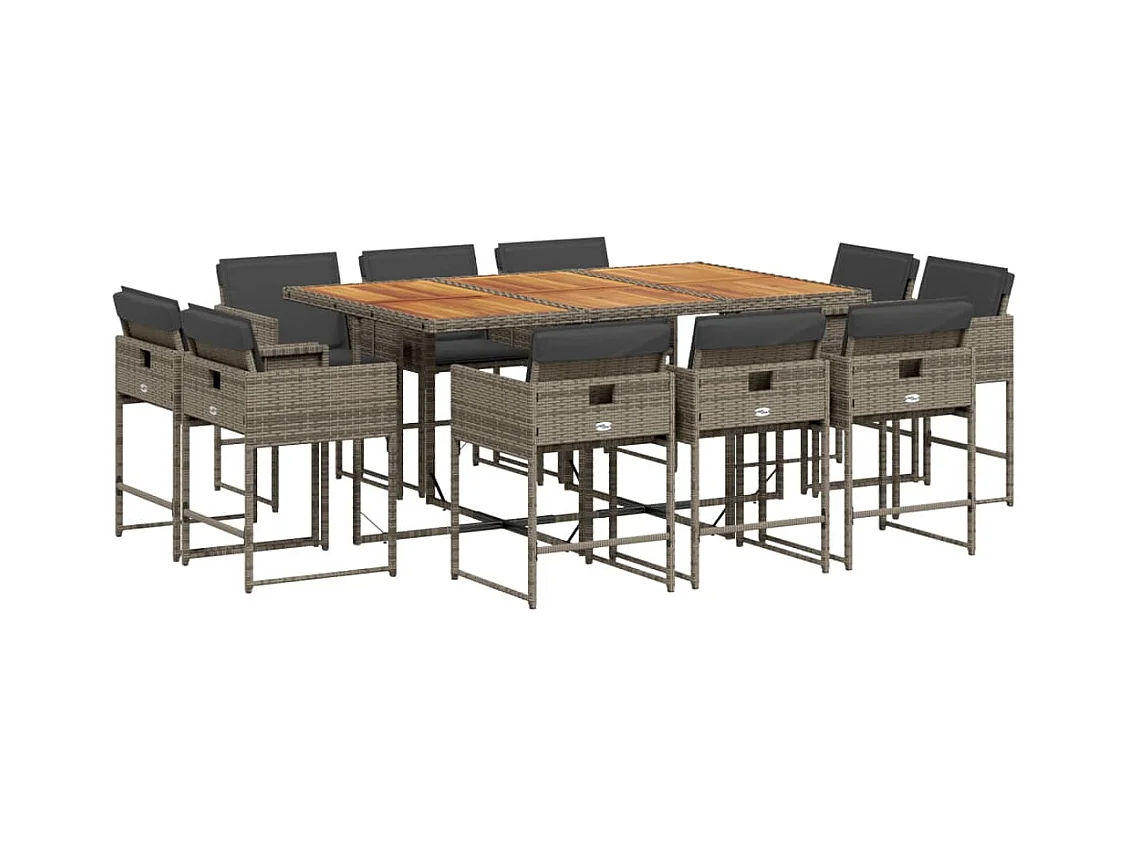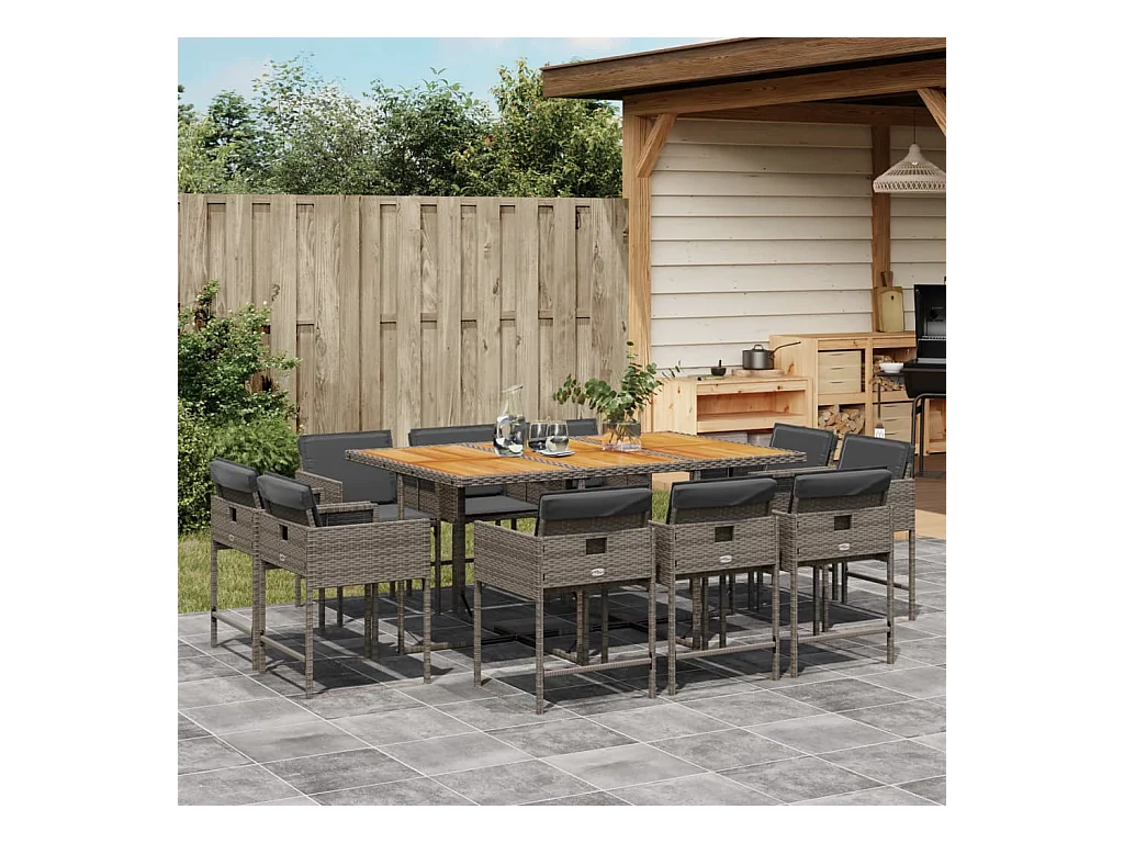 Ensemble à manger de jardin 11pcs avec coussins gris poly rotin