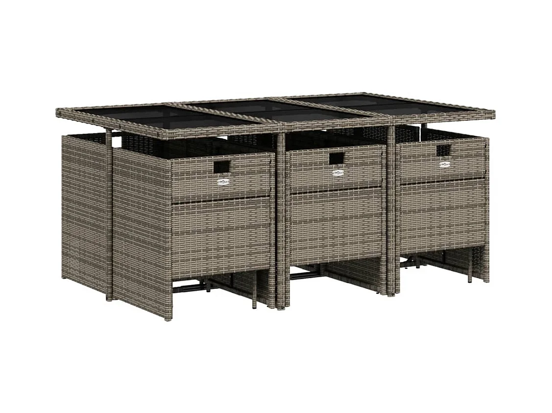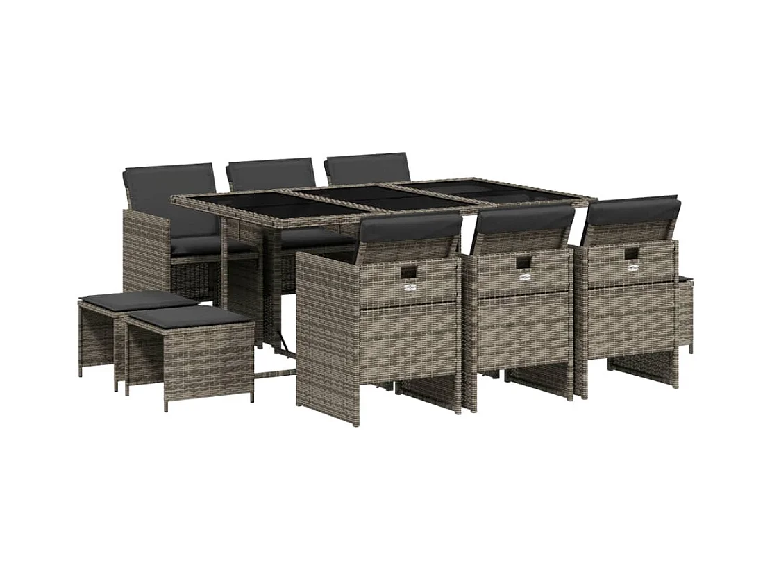 Ensemble à manger de jardin 11pcs avec coussins gris poly rotin