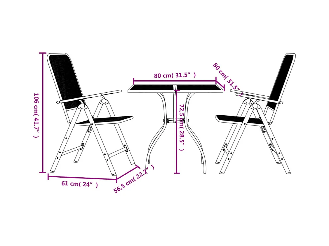 Ensemble à manger de jardin 3 pcs anthracite métal maille