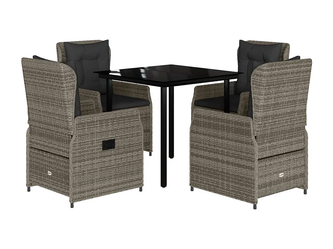 Ensemble à manger de jardin 5 pcs coussins gris résine tressée