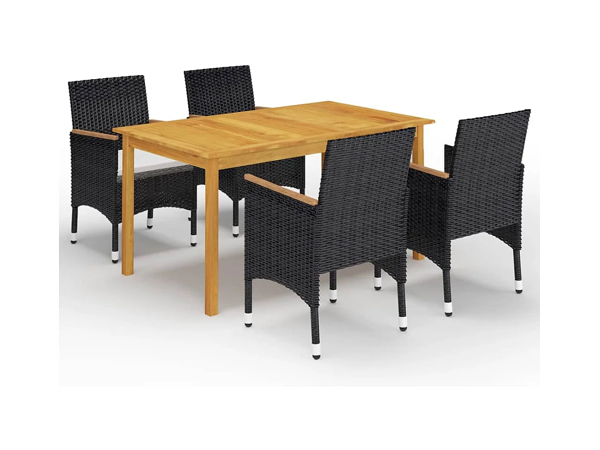 Ensemble à manger de jardin et coussins 5 pcs noir rotin acacia
