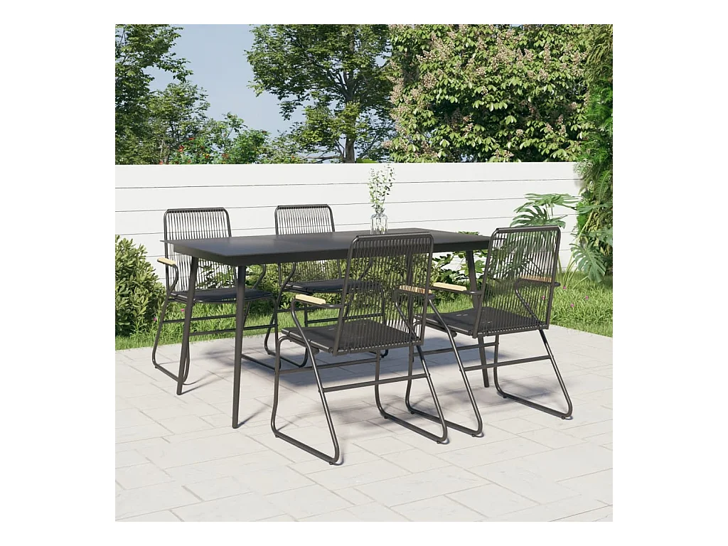 Ensemble à manger de jardin 5 pcs Noir Rotin PVC