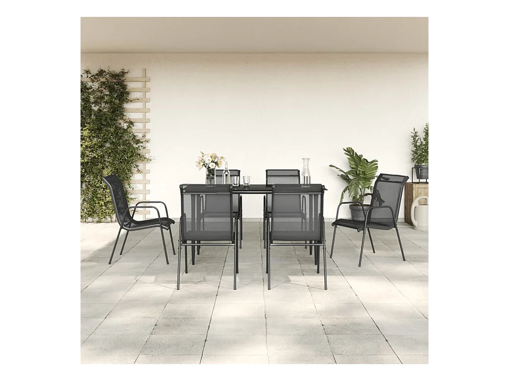 Ensemble à manger de jardin 7 pcs noir textilène et acier