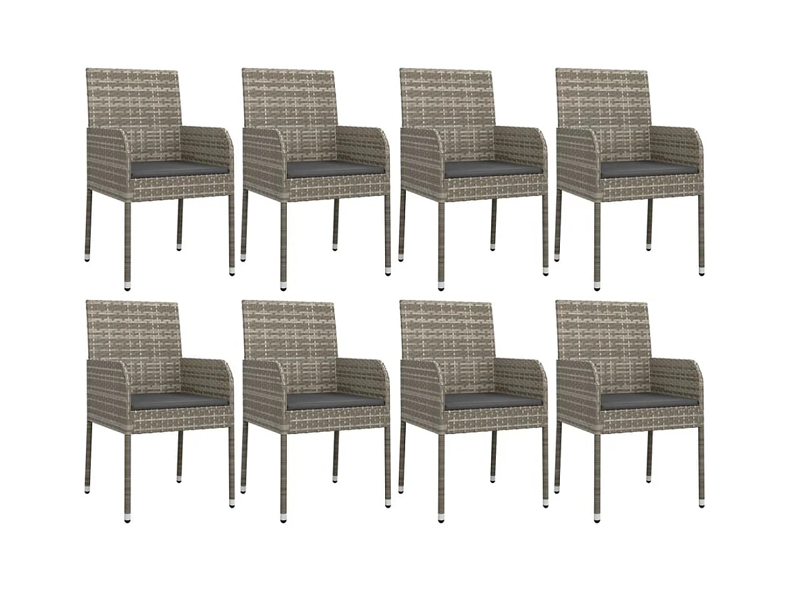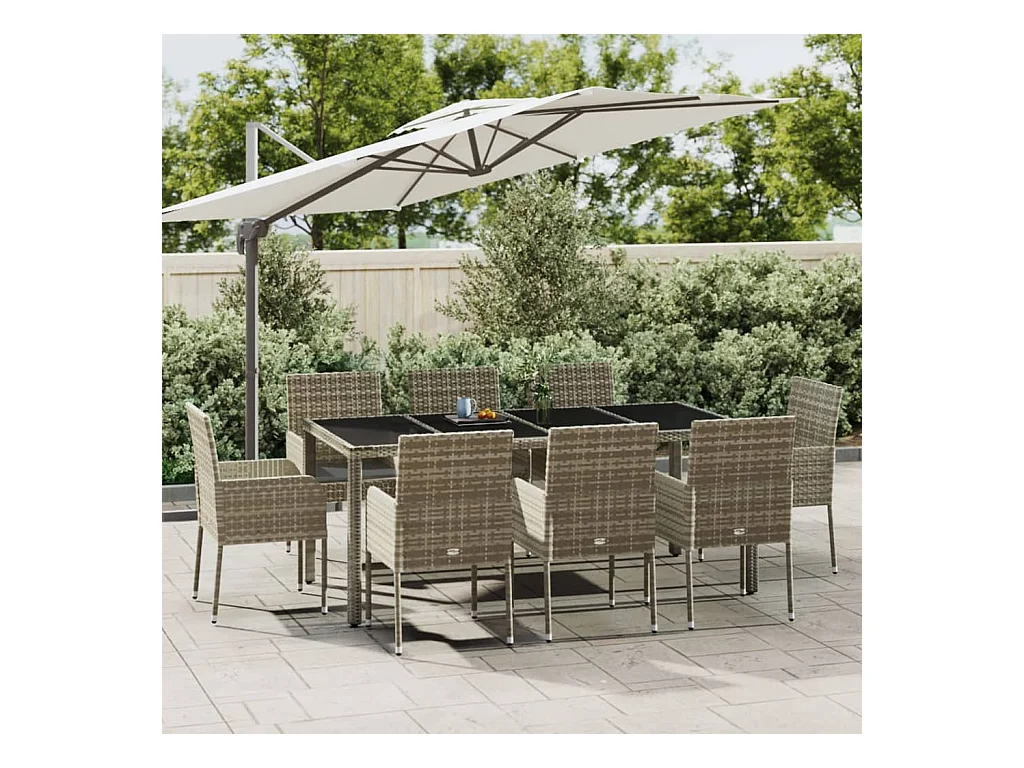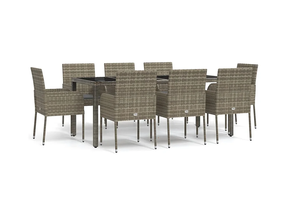 Ensemble à manger de jardin 9 pcs coussins gris résine tressée