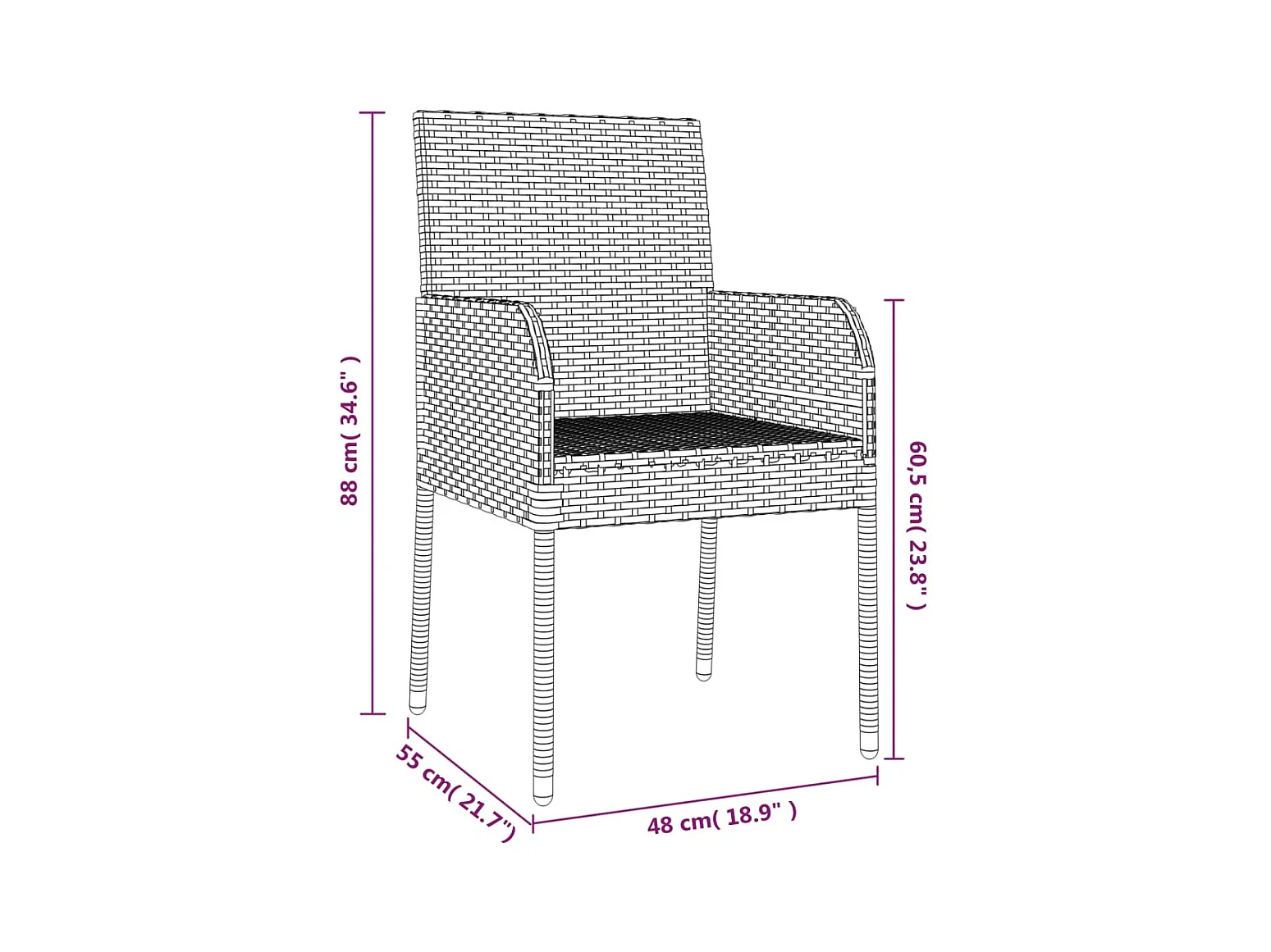 Ensemble à manger jardin 3pcs avec coussins noir et gris