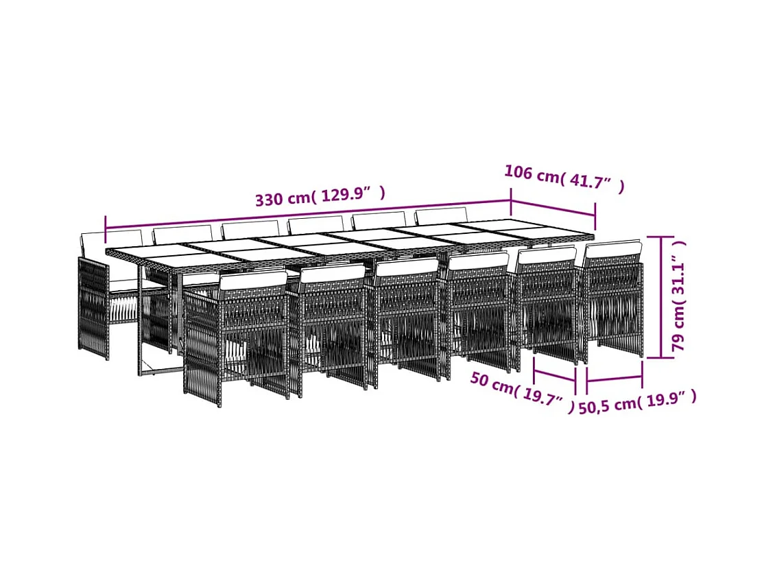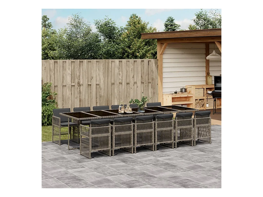 Ensemble à manger de jardin 15 pcs coussins gris résine tressée