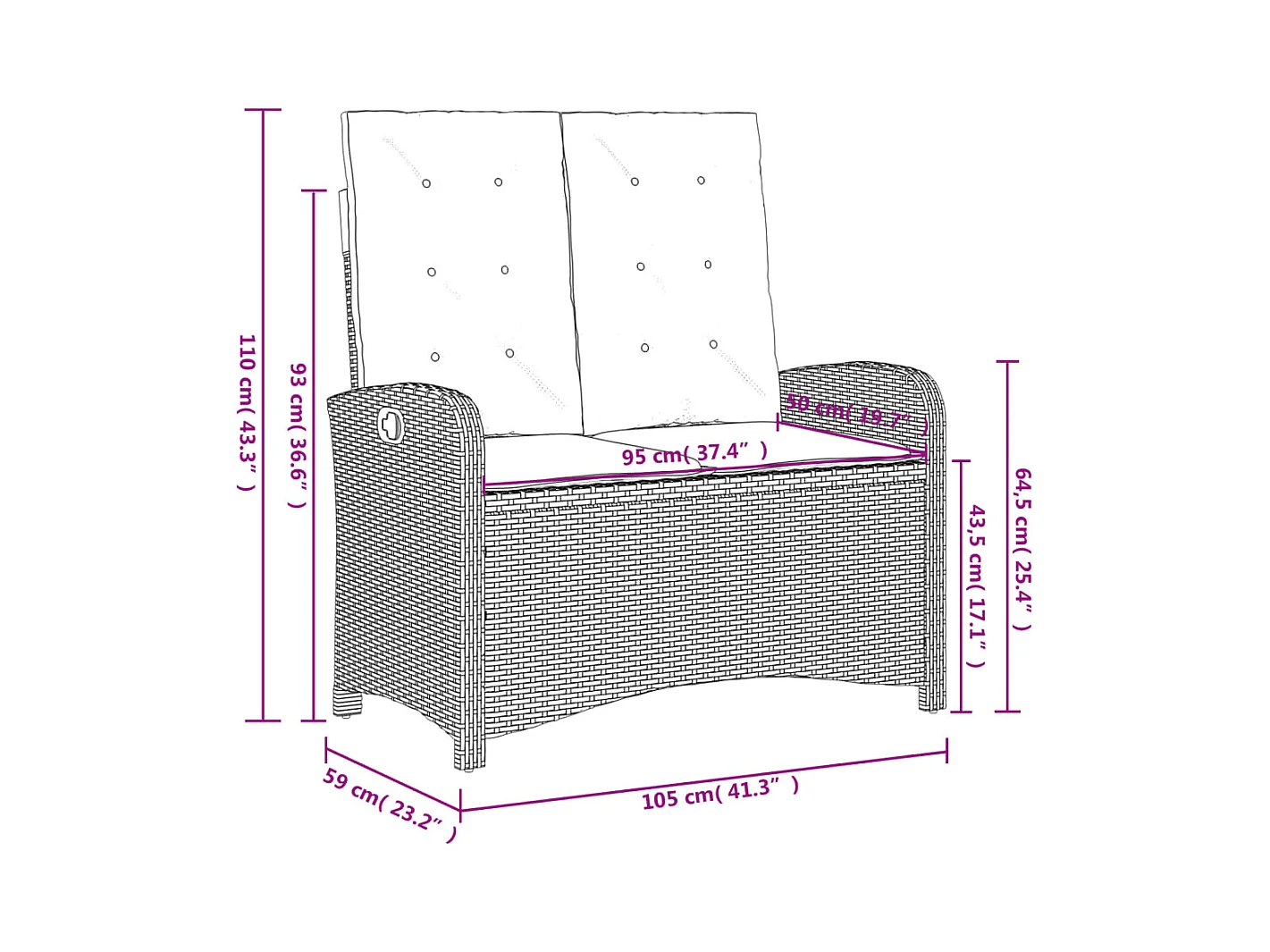 Ensemble à manger de jardin coussins 2pcs noir résine tressée