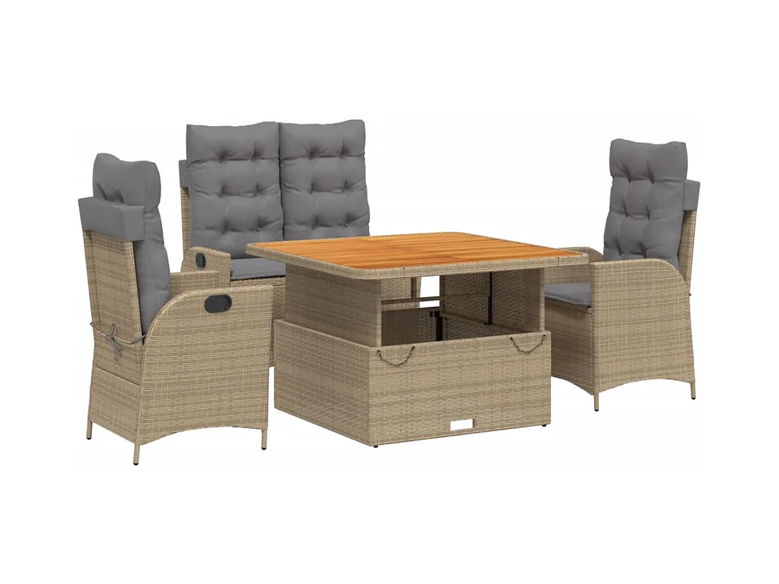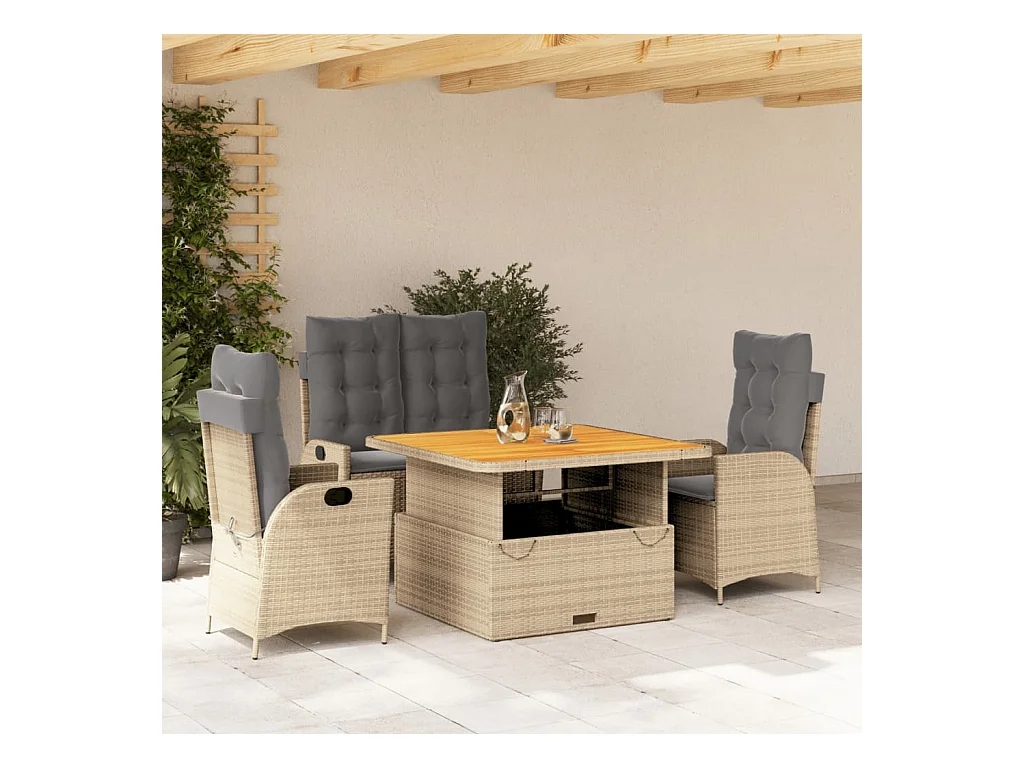 Ensemble à manger de jardin coussins 4 pcs beige résine tressée
