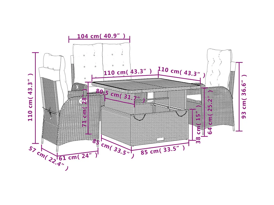 Salon complet de jardin marron