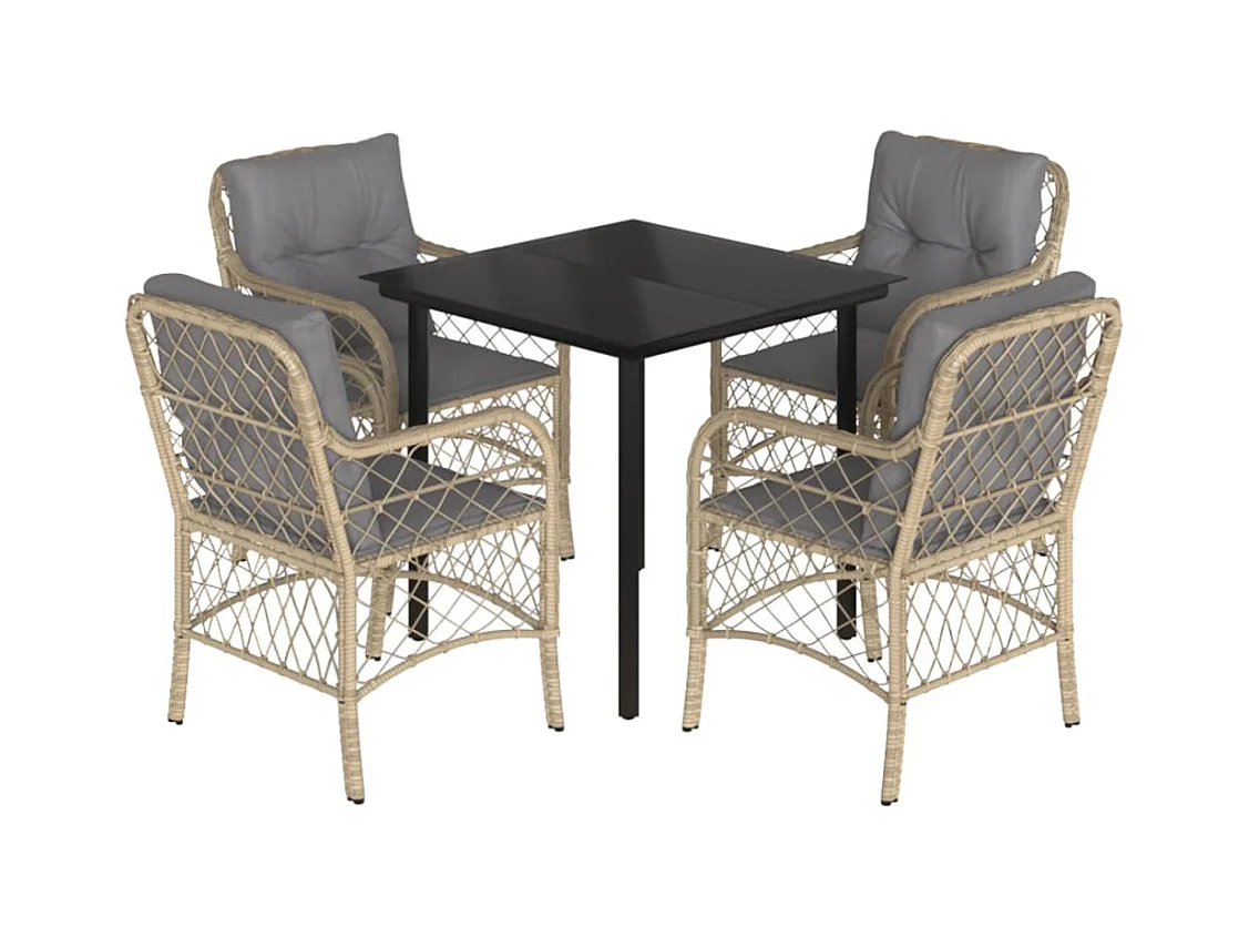 Ensemble à manger de jardin avec coussins 5pcs Beige poly rotin