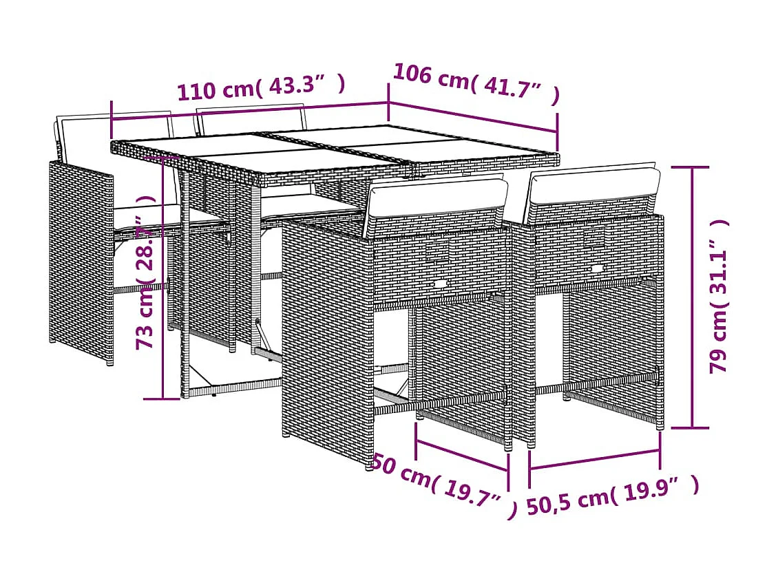 Ensemble à manger de jardin coussins 5 pcs mélange beige rotin