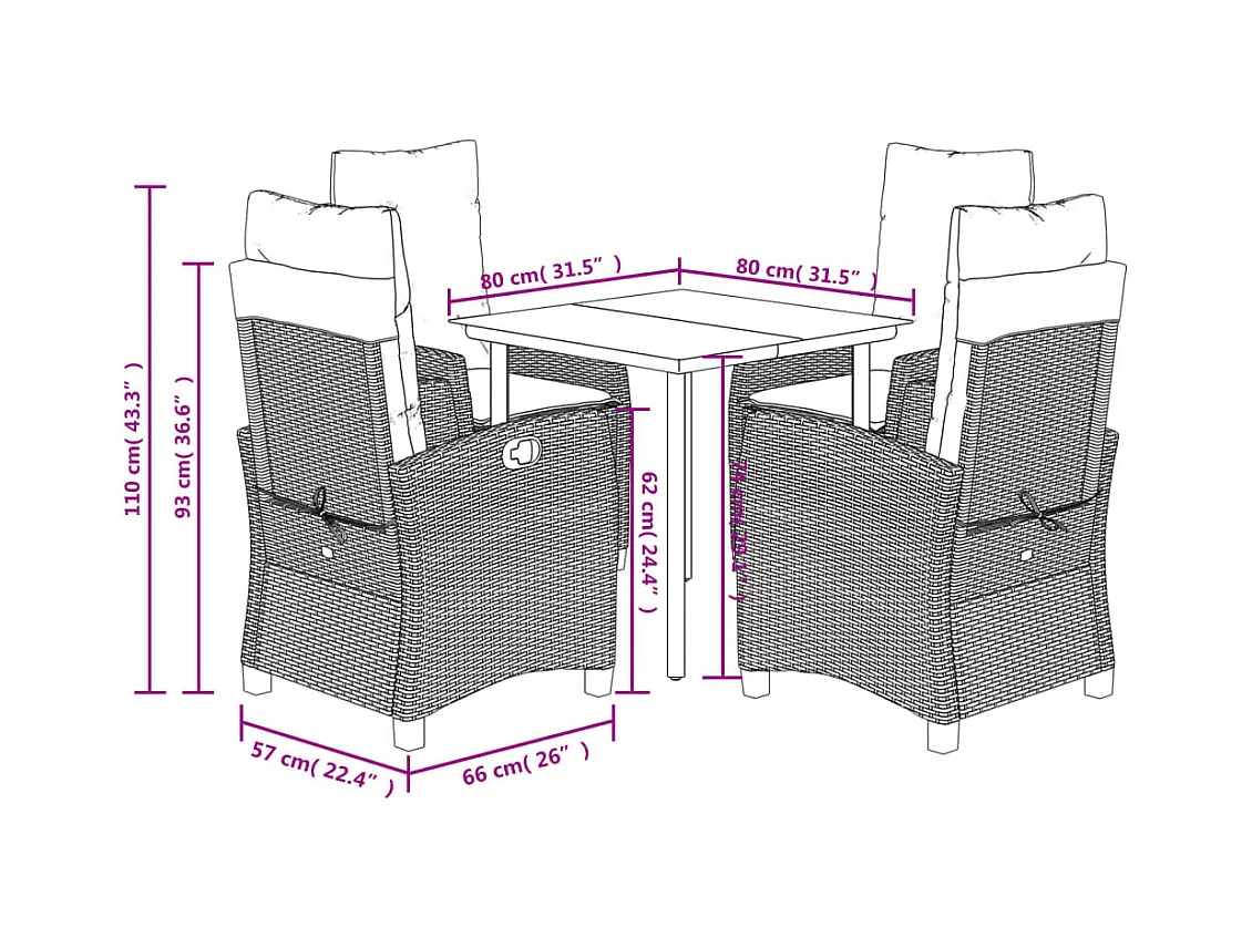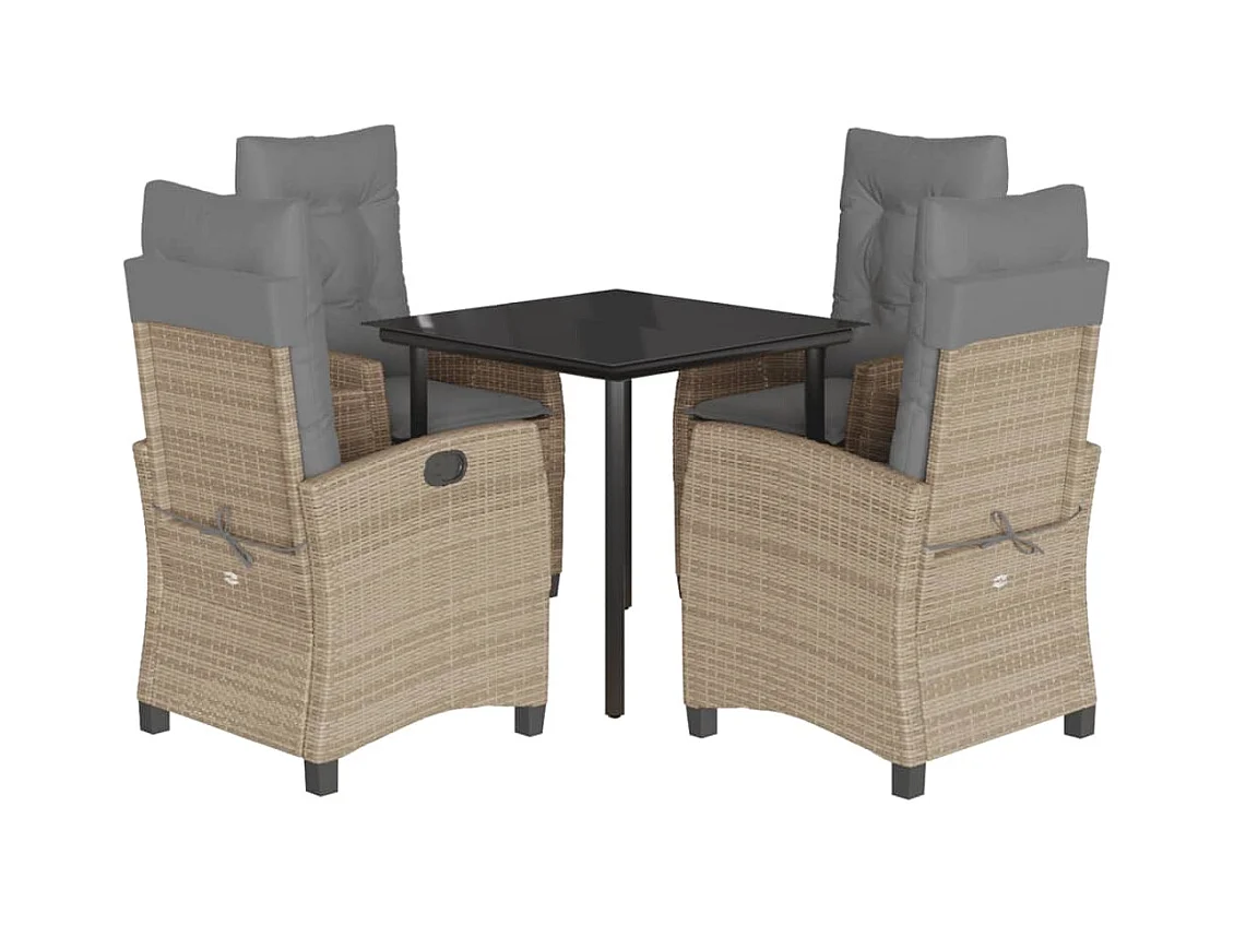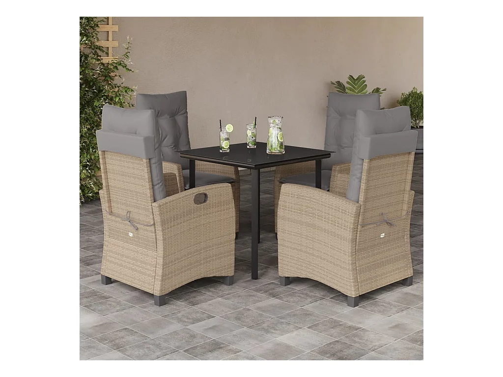 Ensemble à manger de jardin avec coussins 5pcs Beige poly rotin