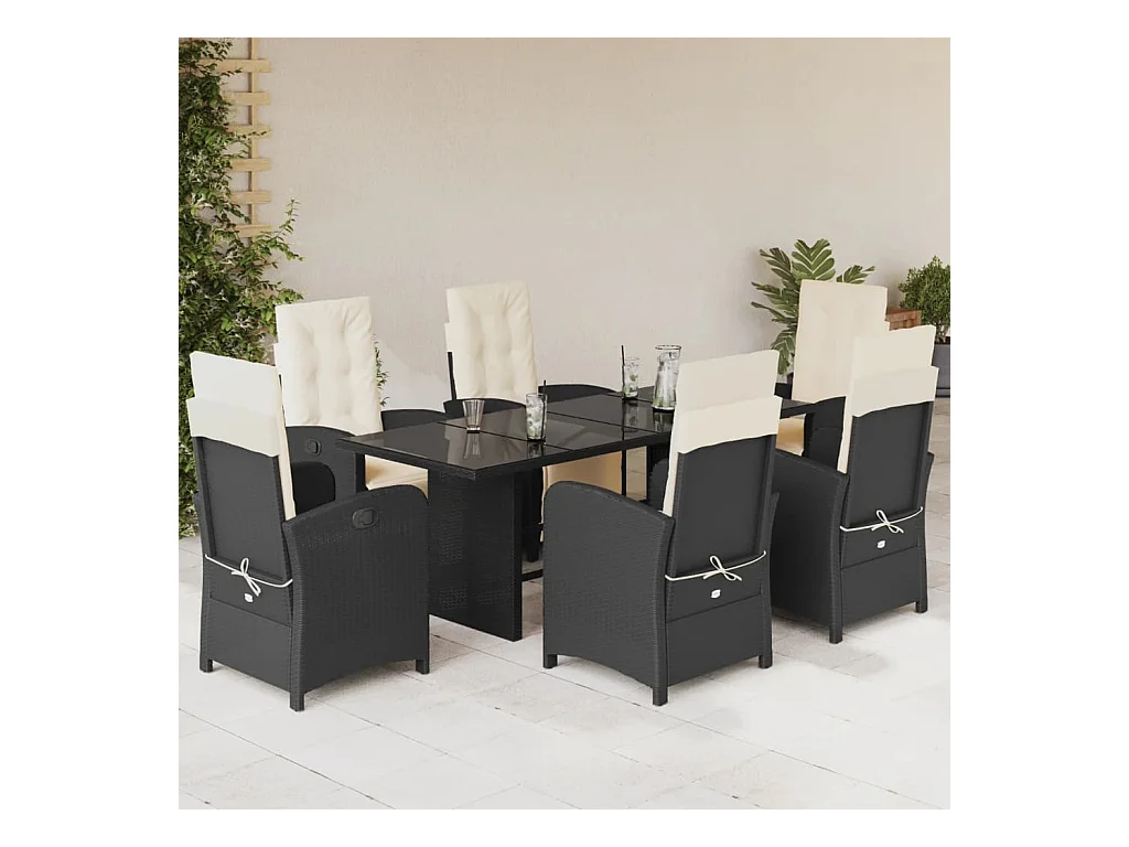 Ensemble à manger de jardin coussins 7pcs Noir Résine tressée