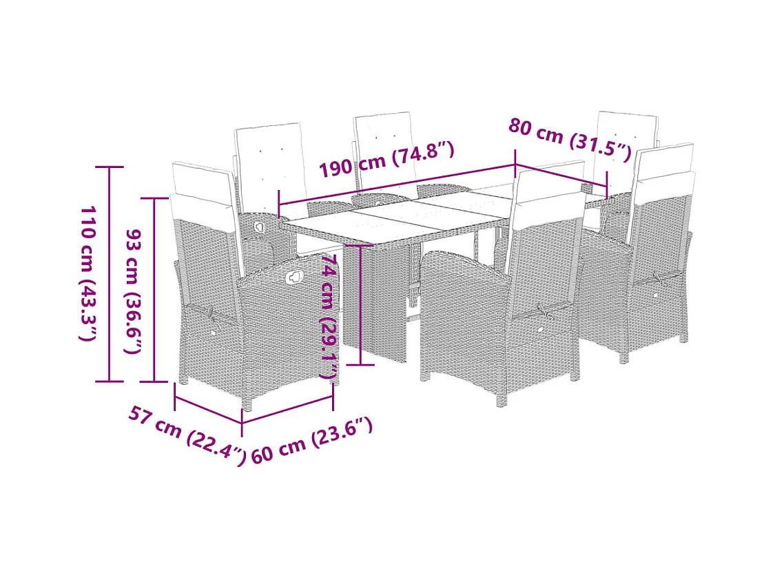 Ensemble à manger de jardin 9pcs coussins noir résine tressée