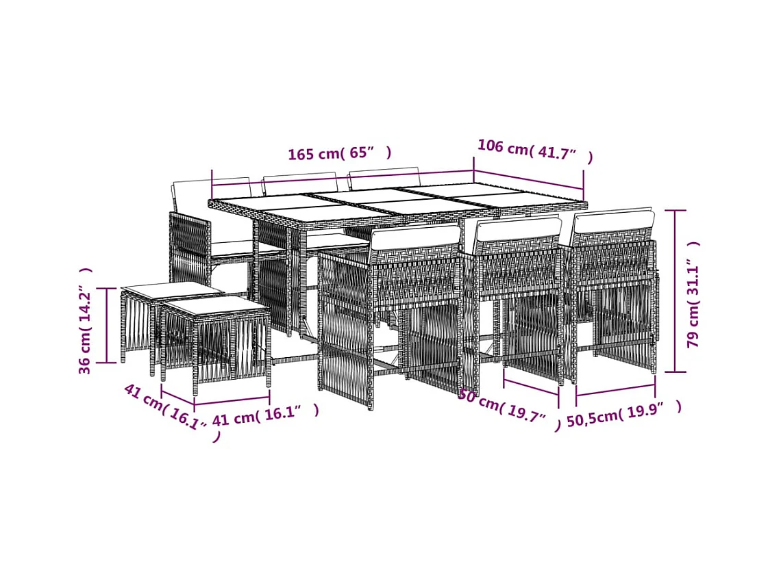 Ensemble à manger de jardin et coussins 11 pcs marron rotin