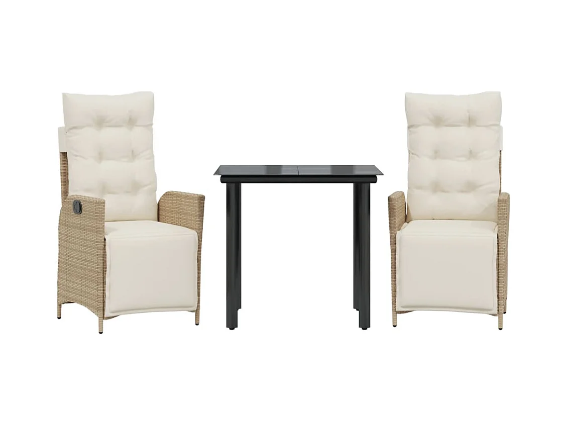 Ensemble à manger de jardin et coussins 3 pcs Beige poly rotin