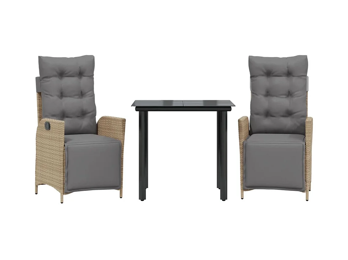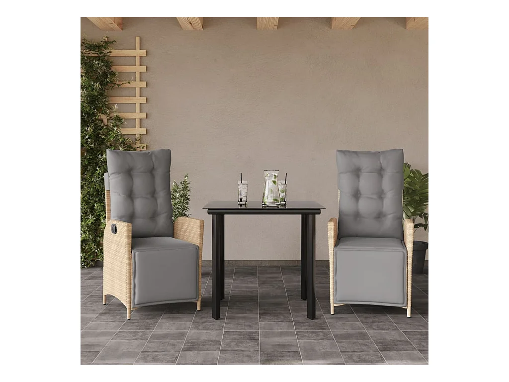 Ensemble à manger de jardin et coussins 3 pcs Beige poly rotin