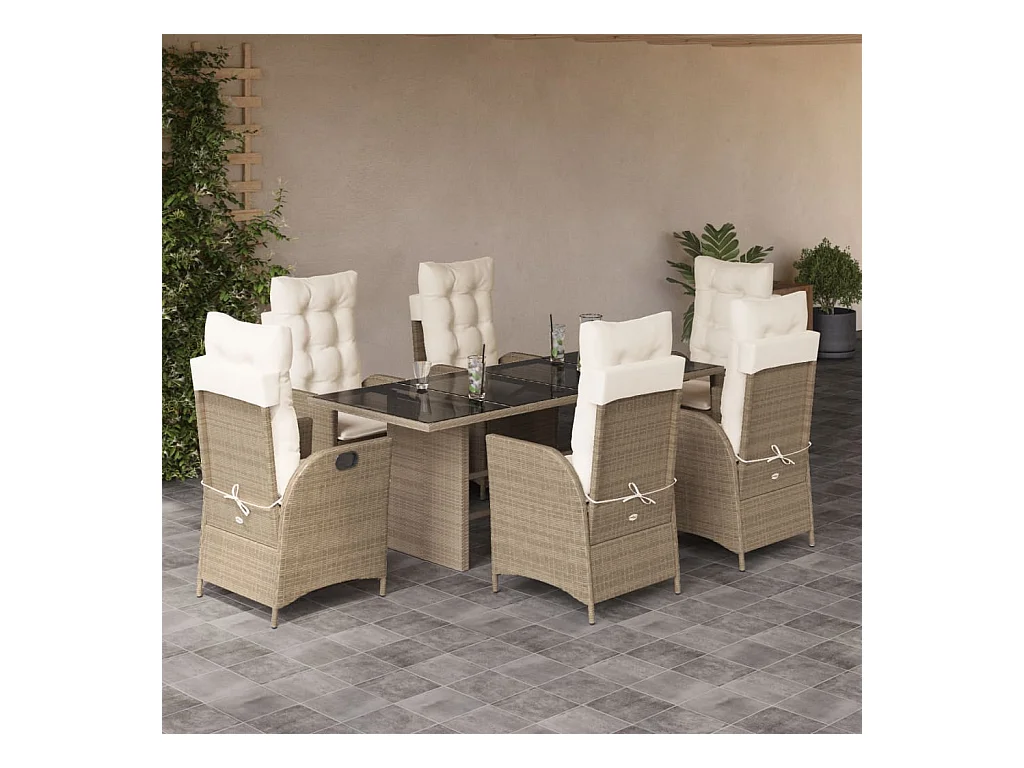 Ensemble à manger de jardin et coussins 7 pcs beige poly rotin