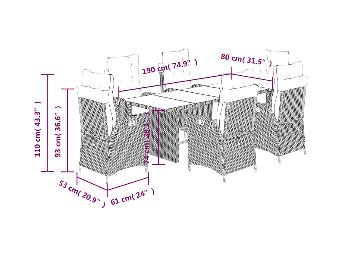 Ensemble à manger de jardin et coussins 7 pcs gris rotin