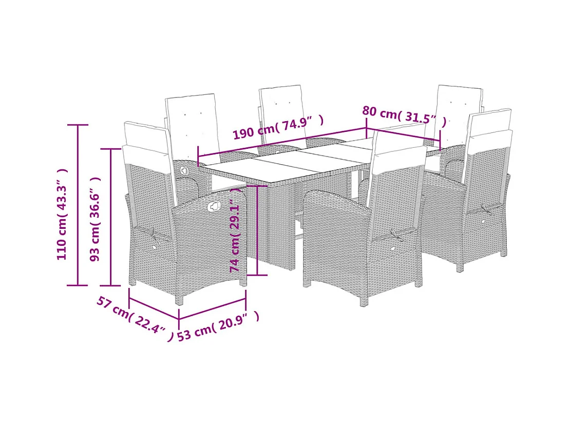 Ensemble à manger de jardin et coussins 7 pcs gris rotin