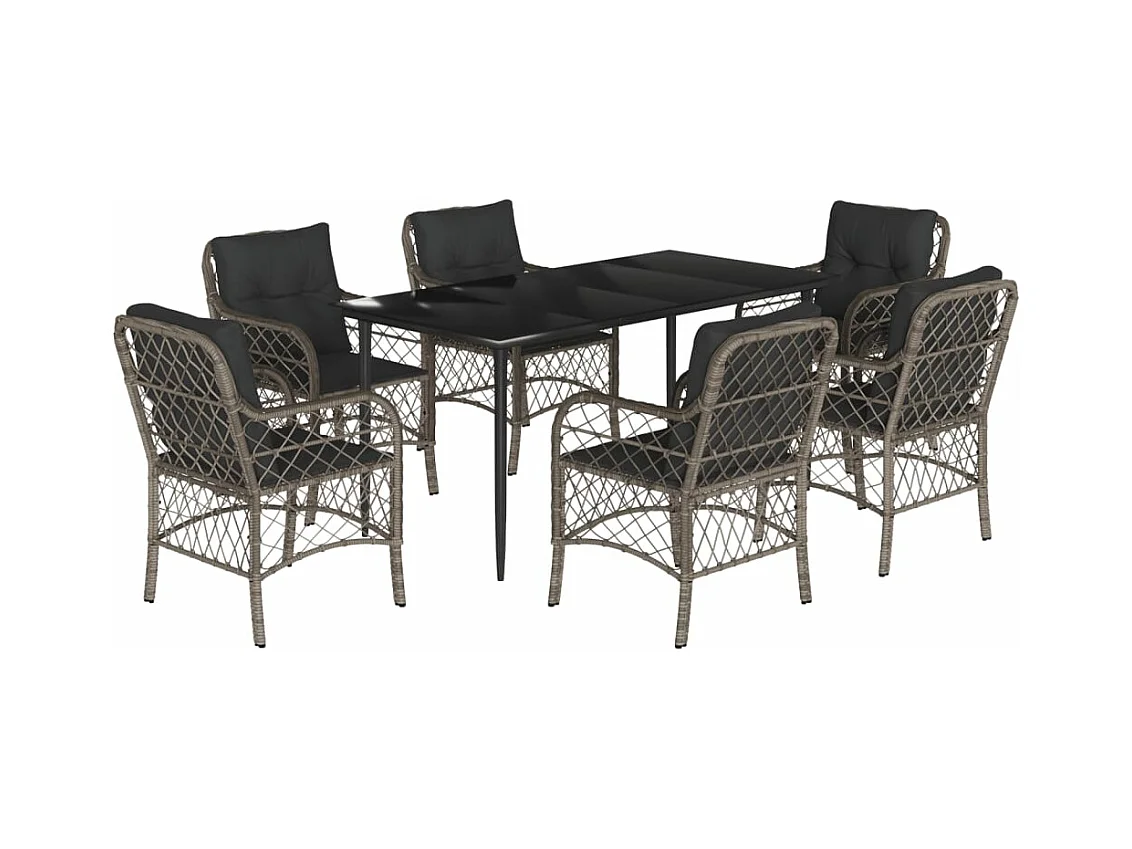 Ensemble à manger de jardin et coussins 7 pcs gris rotin