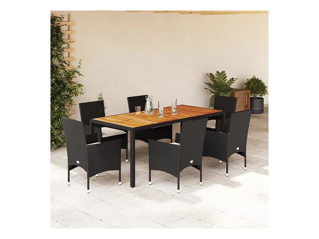Ensemble à manger de jardin et coussins 7pcs noir rotin acacia