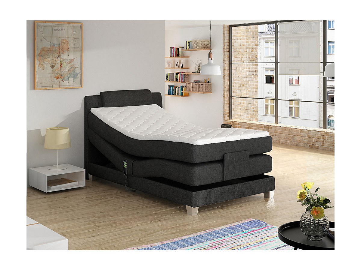 Ensemble boxspring tête de lit + sommiers relaxation électrique + matelas + surmatelas CASTEL de PALACIO - 100 x 200 cm - Tissu anthracite