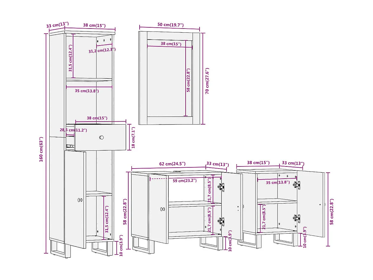 Ensemble d'armoires de bain 4 pcs marron noir bois de manguier