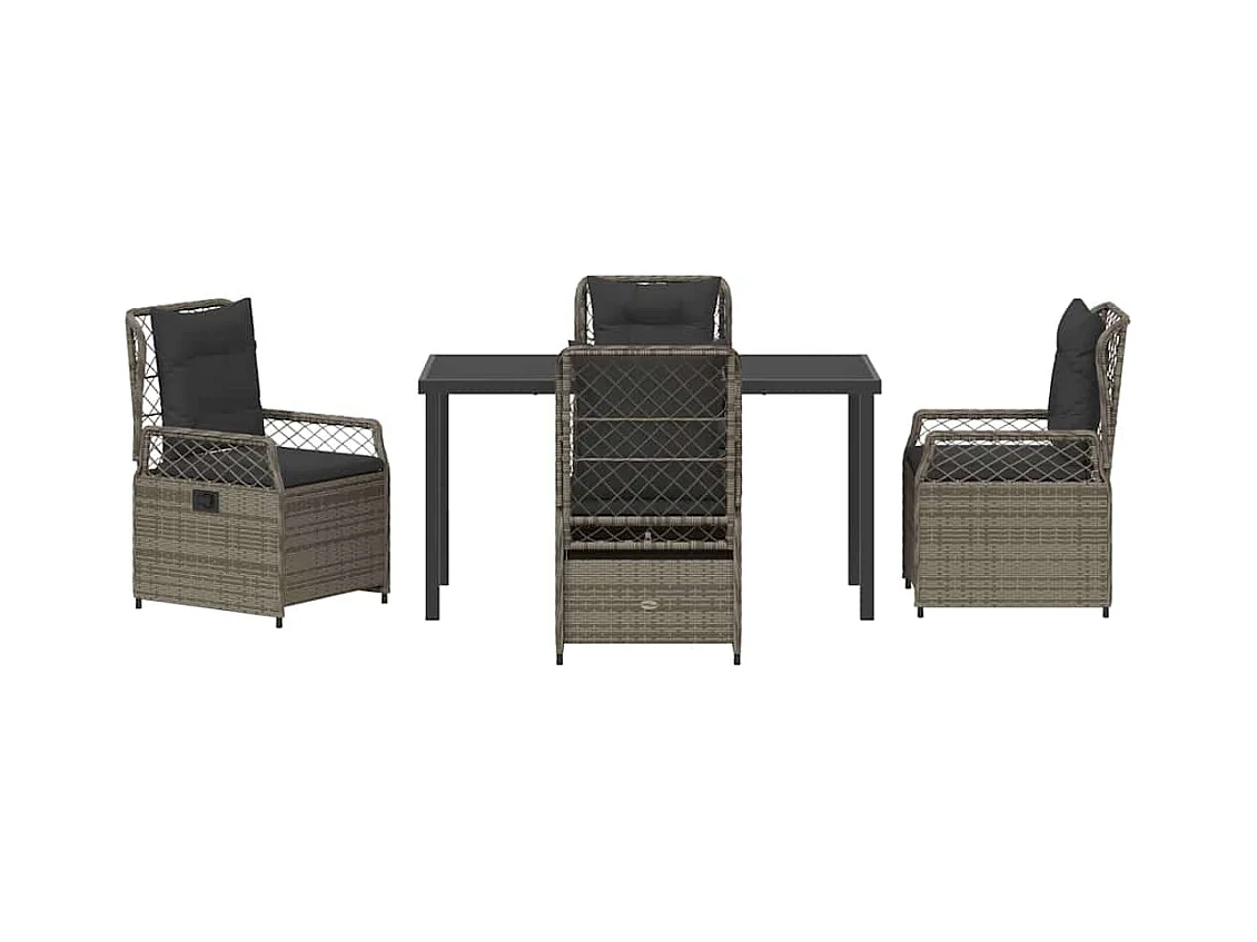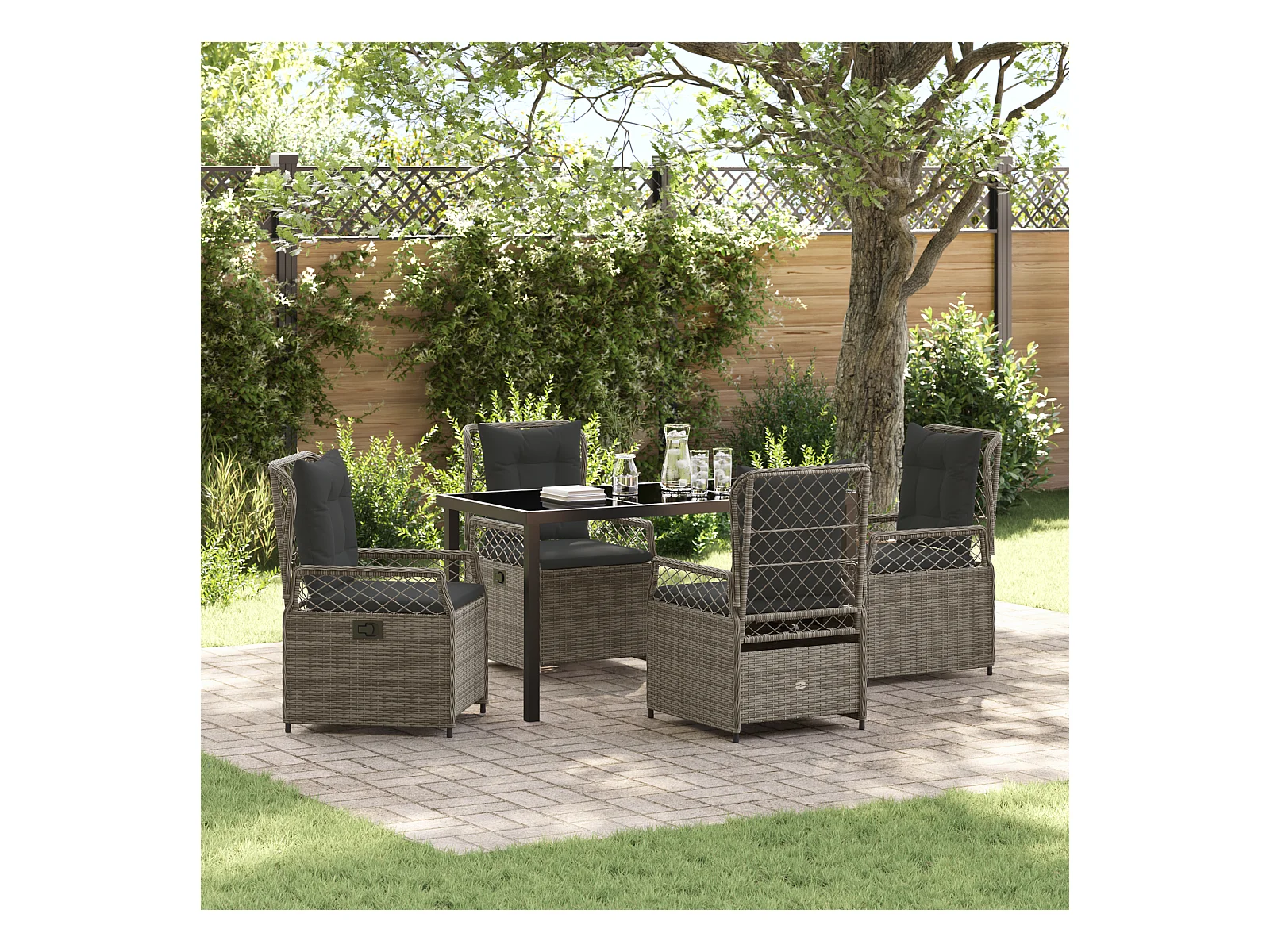 Ensemble de salle à manger de jardin 5 pièces avec coussins en rattan poly gris