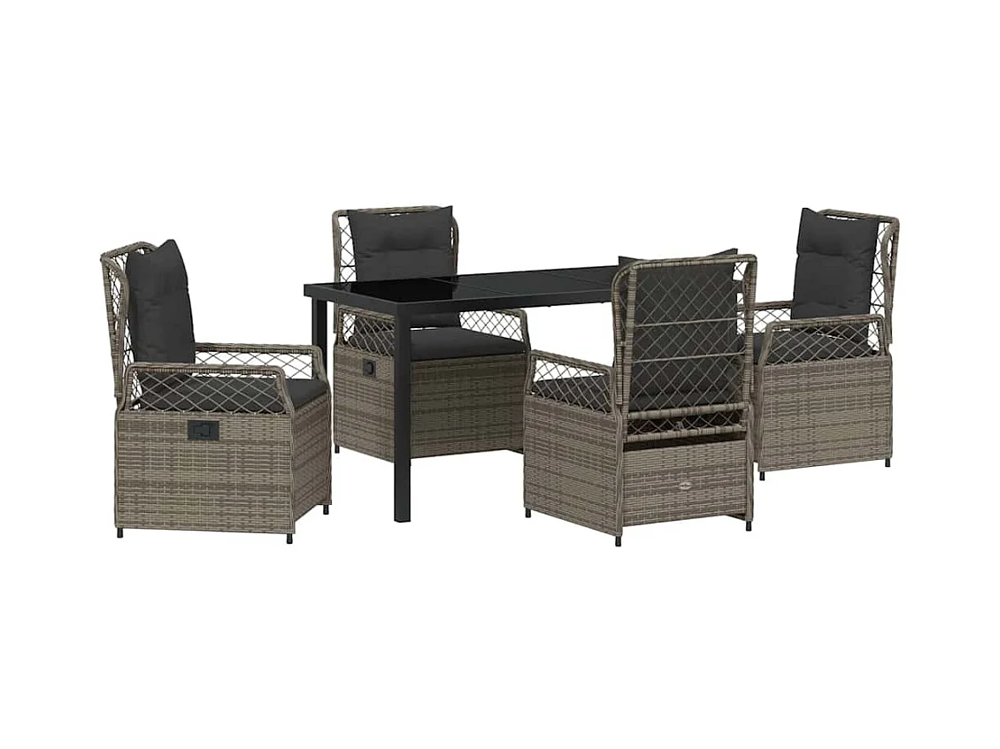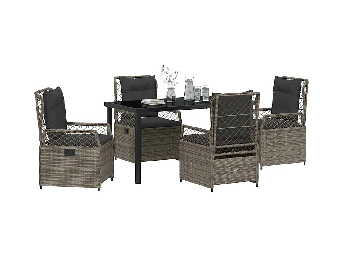 Set de salle à manger de jardin 5 pièces Gris en Rattan Poly