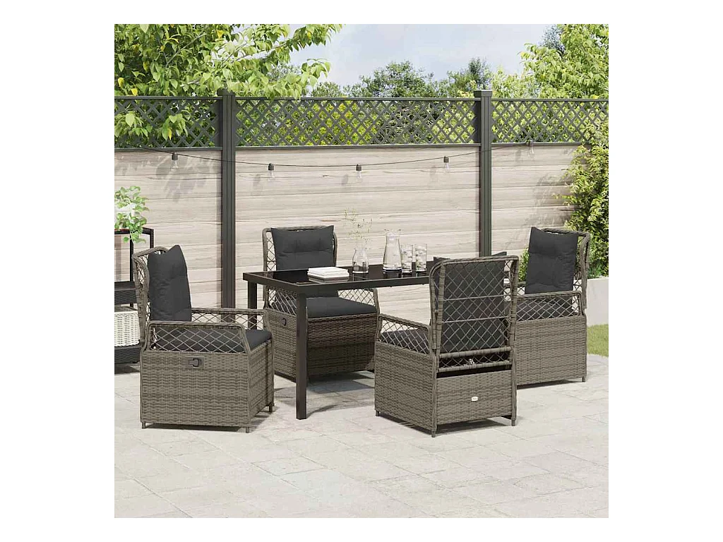 Ensemble de salle à manger jardin 5 pièces avec coussins gris en rotin synthétique