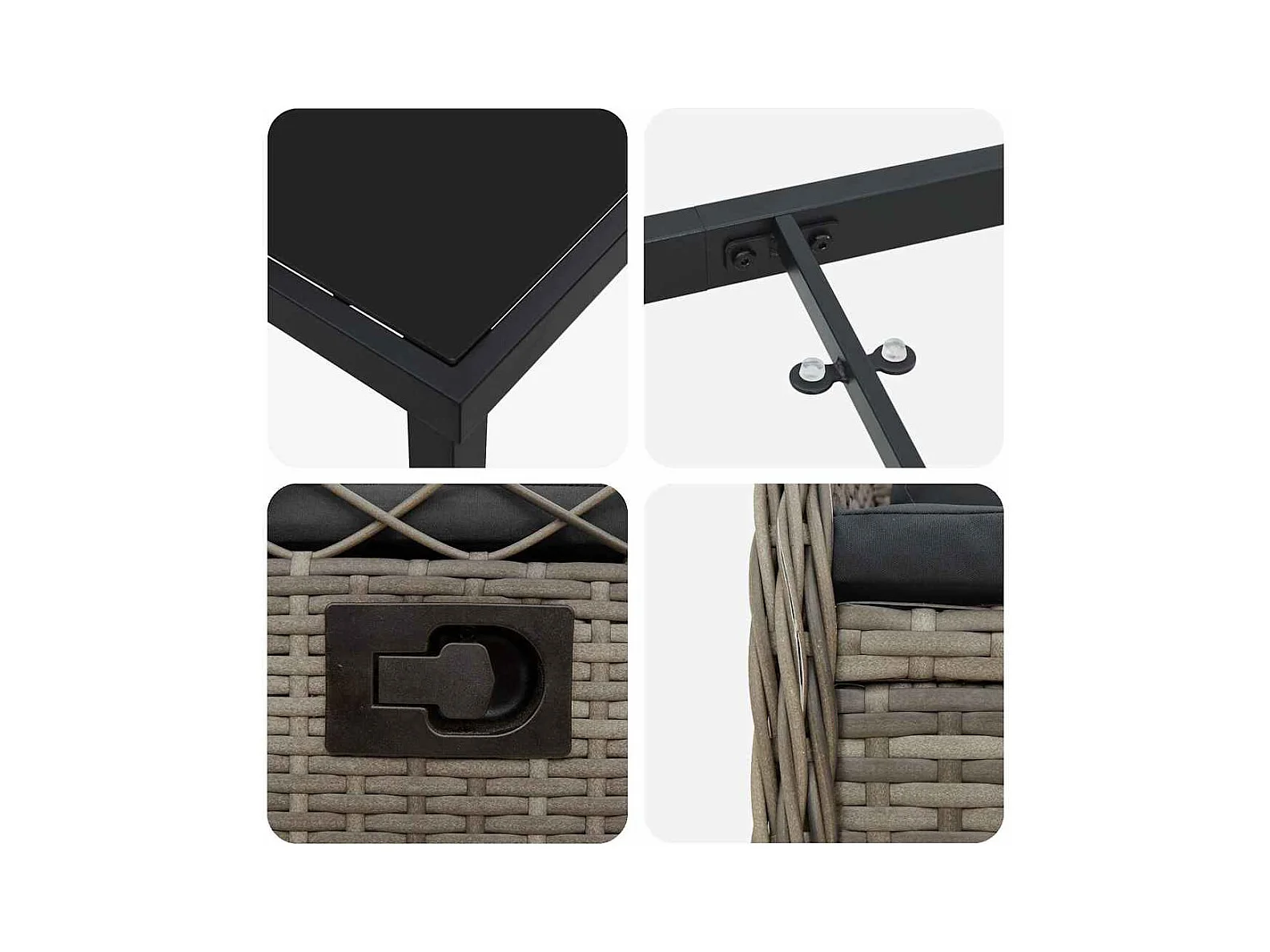 Table de jardin avec plateau en verre noir 55 x 55 x 37 cm en résine tressée