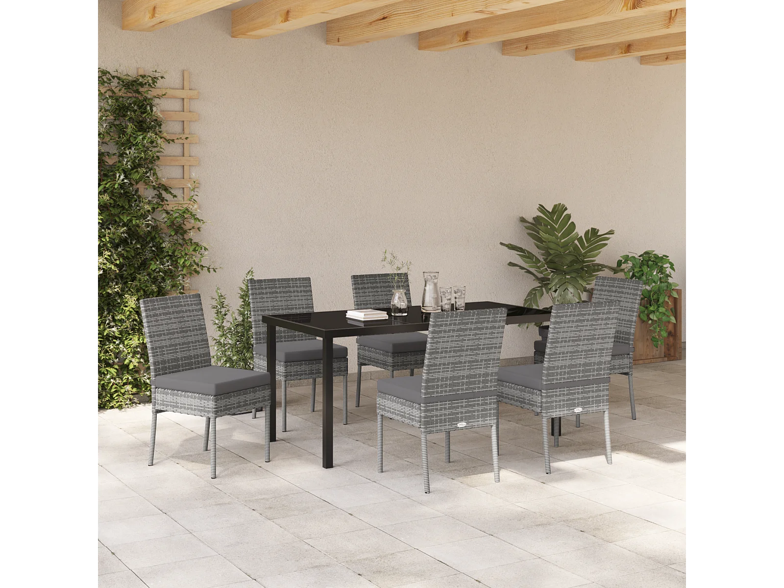 Ensemble de 7 chaises de jardin gris polyrattan