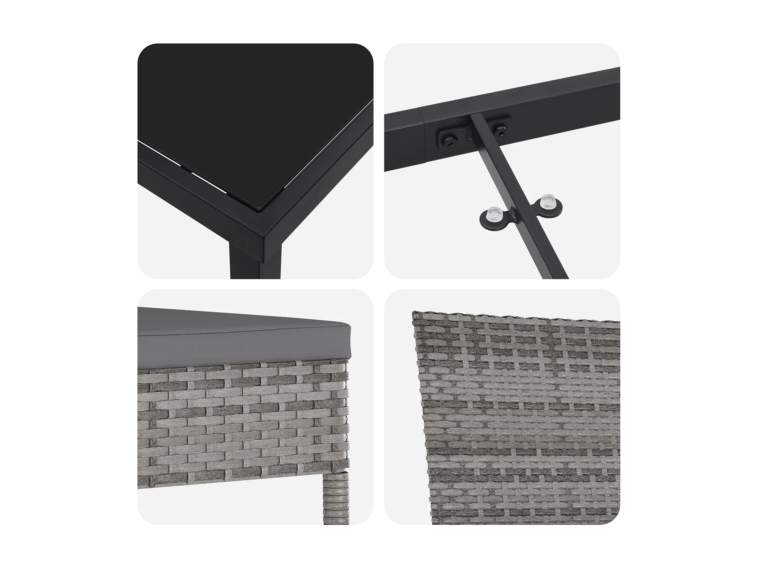 Table de jardin avec plateau en verre noir 55 x 55 x 37 cm en résine tressée