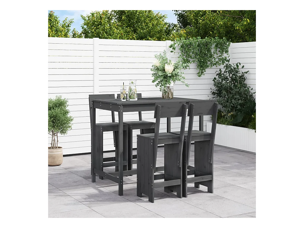 Ensemble de bar de jardin 5 pcs gris bois de pin massif