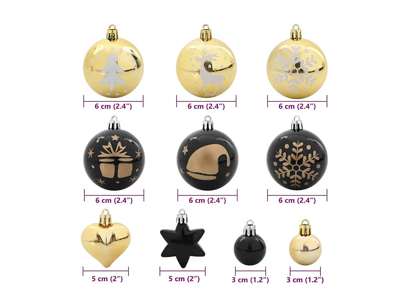 Ensemble de Boules de Noël 40 pcs Noir et or