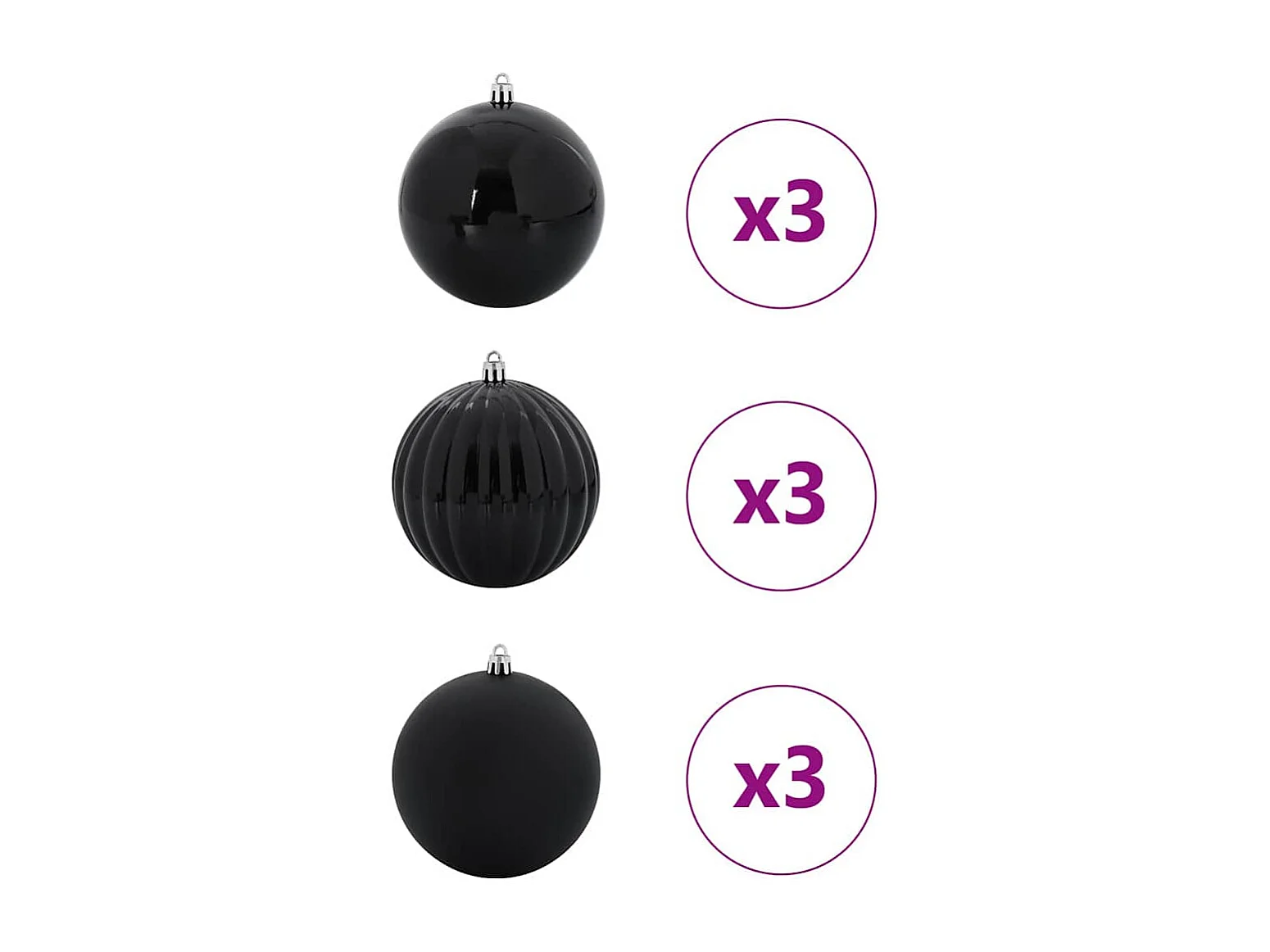 Ensemble de boules de Noël 111 pièces noir polystyrène