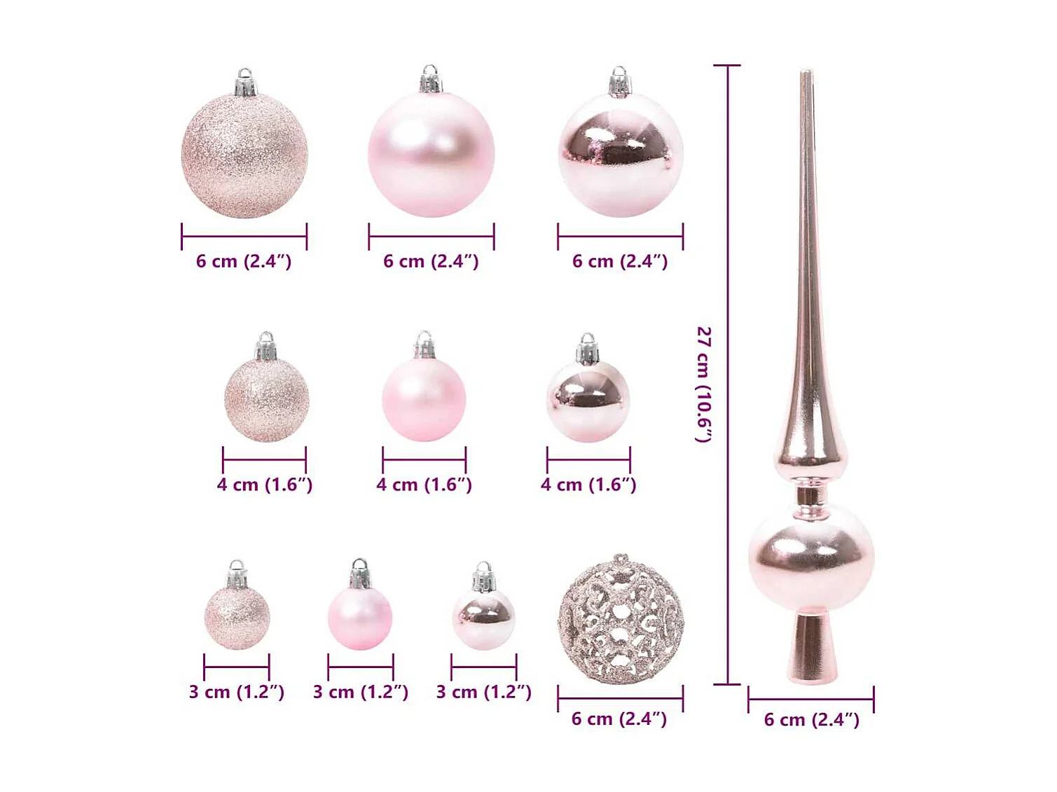 Ensemble de Boules de Noël avec 150 LED 61 pcs Rose Plastique