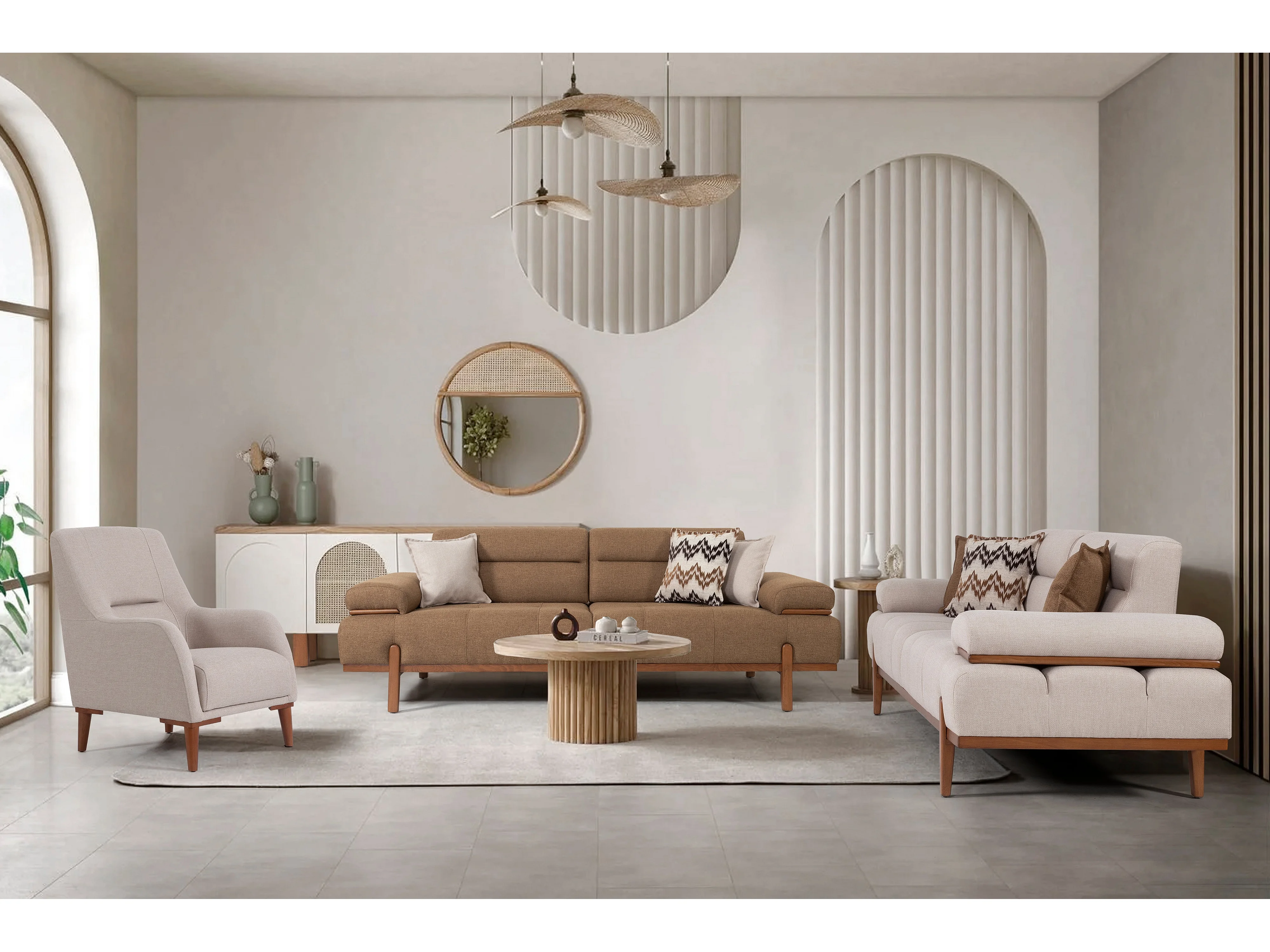 Ensemble de canapé Spring 3 pièces Marron-Beige – 2 trois places & fauteuil