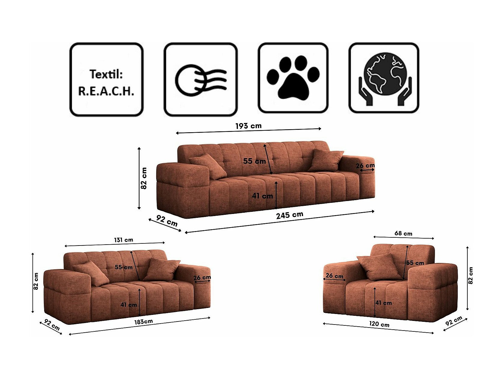 Ensemble de canapés 3+2+1 série NIMES tissu élégant Perfect Harmony Copper