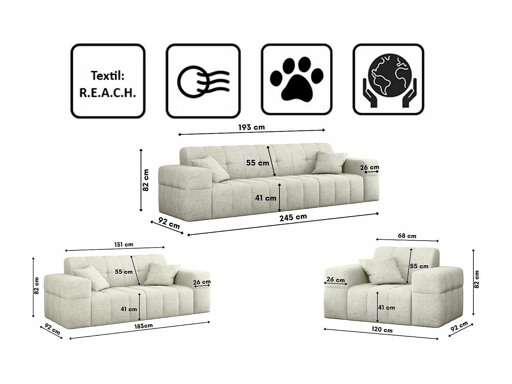 Ensemble de canapés 3+2+1 série NIMES tissu élégant Perfect Harmony crème