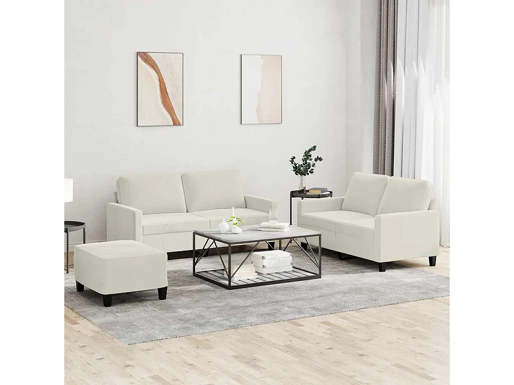 Ensemble de canapés 3 pcs avec coussins Crème Velours