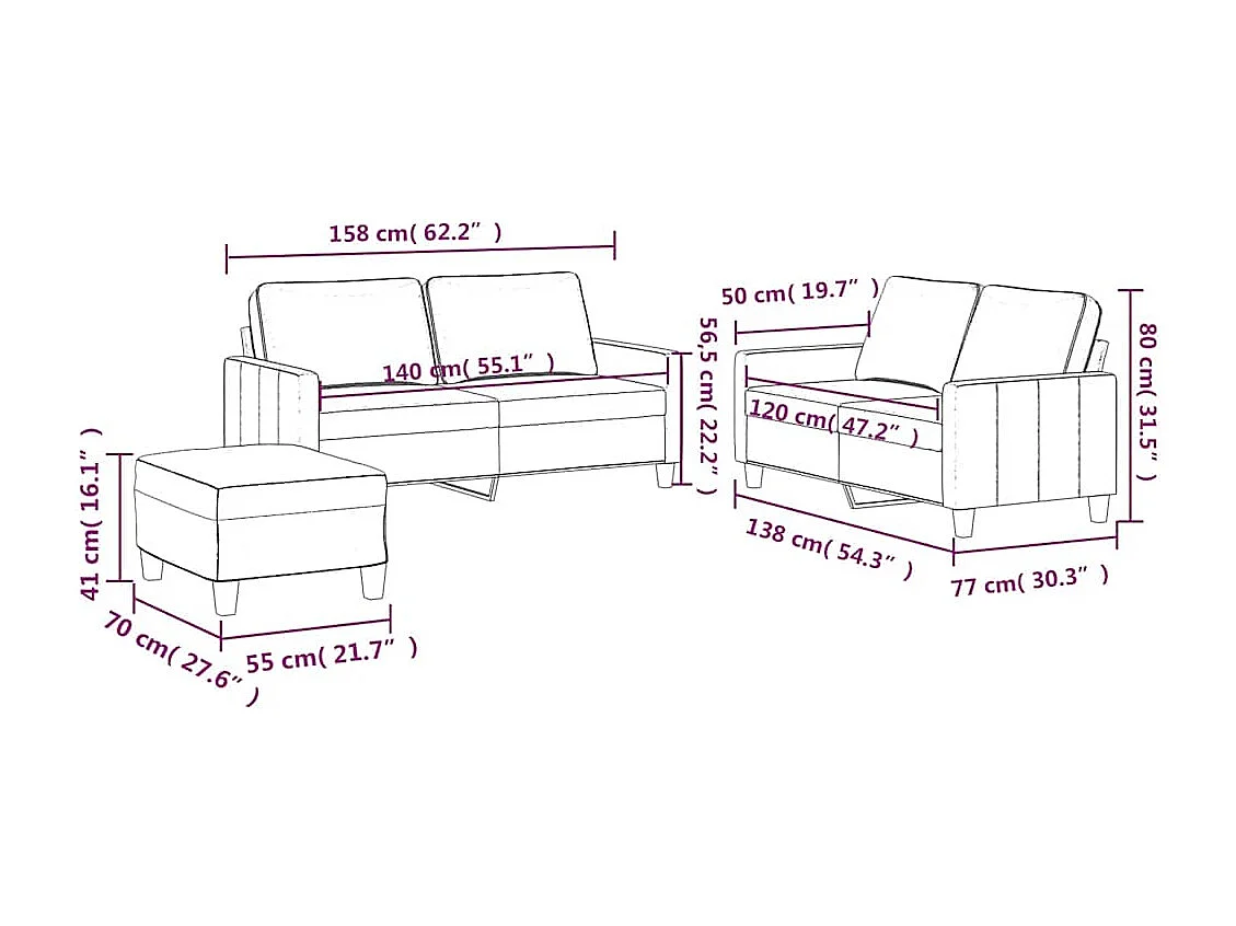 Ensemble canapé fauteuil fixe