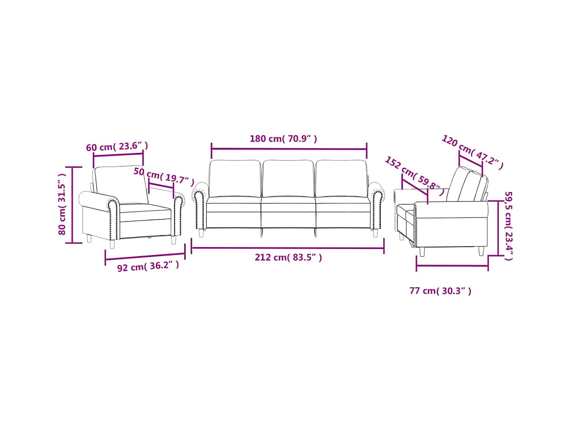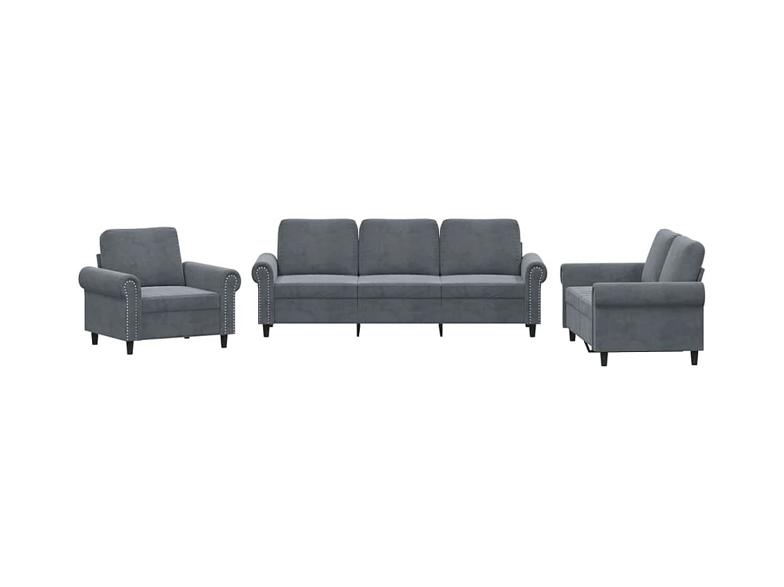Ensemble de canapés 3 pcs avec coussins Gris foncé Velours