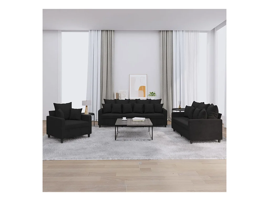 Ensemble de canapés 3 pcs avec coussins noir tissu