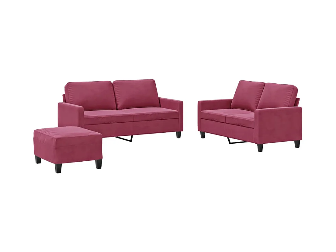 Ensemble de canapés 3 pcs rouge bordeaux velours