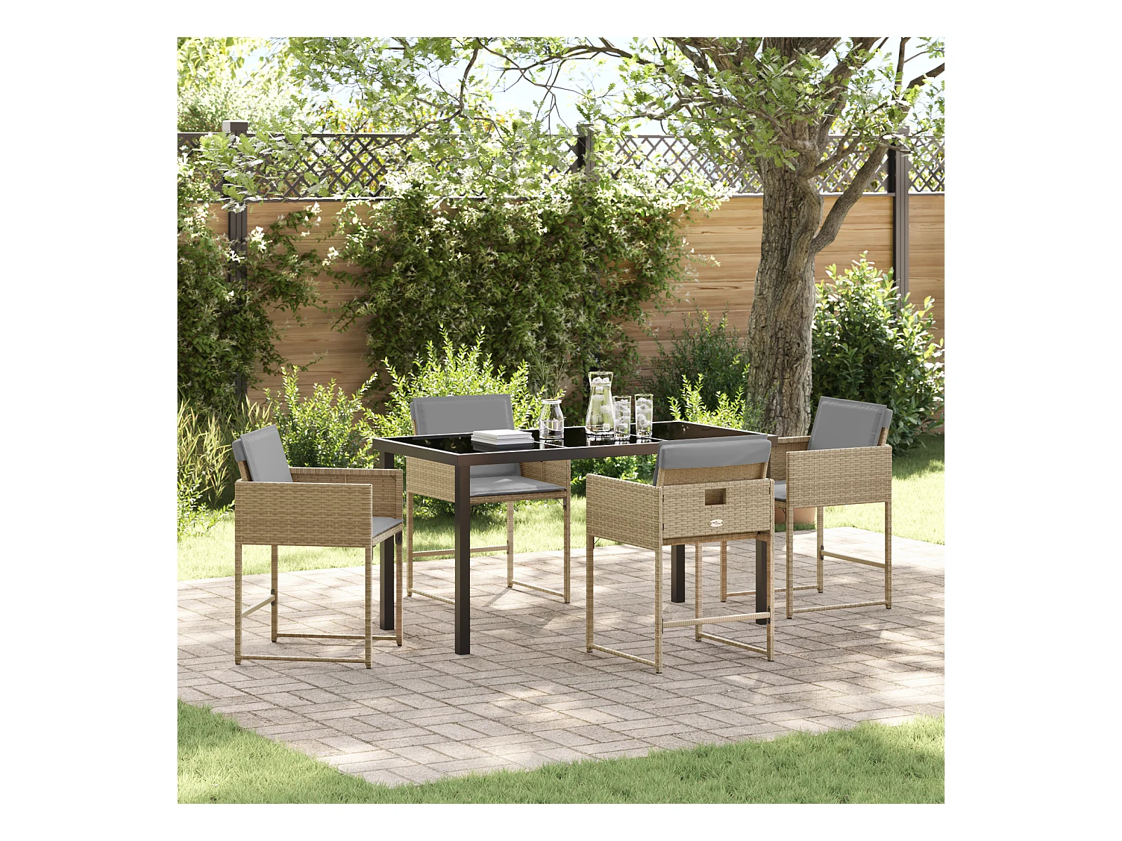 Ensemble de Jardin 5 Pièces Beige en Rattan PE