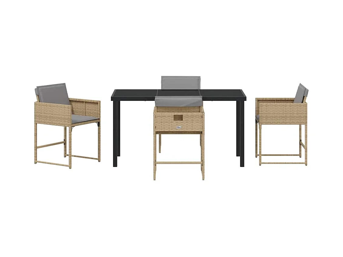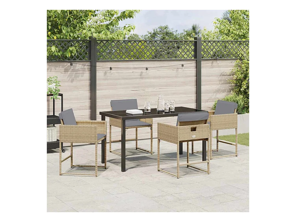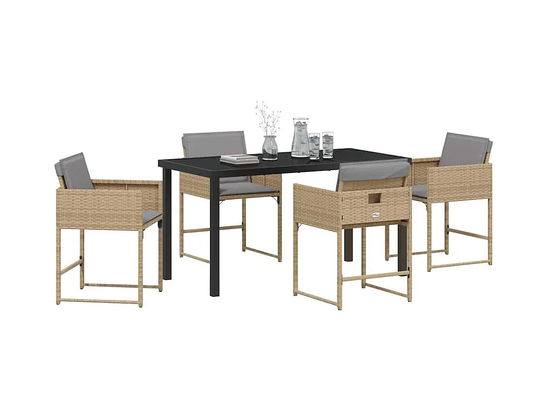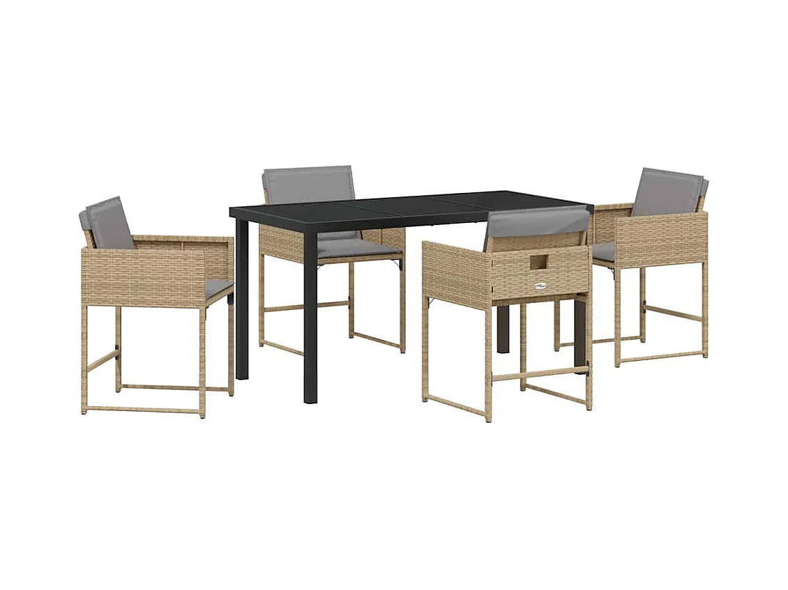 Ensemble repas jardin 5 pièces avec coussins Beige Poly Rattan