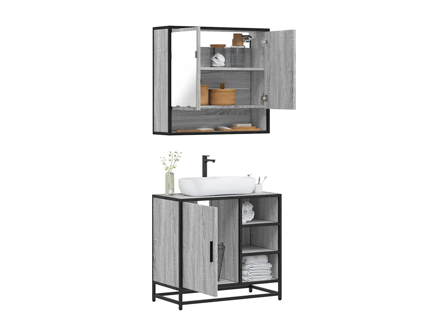 Ensemble de meubles de salle de bain 2 pcs Sonoma gris