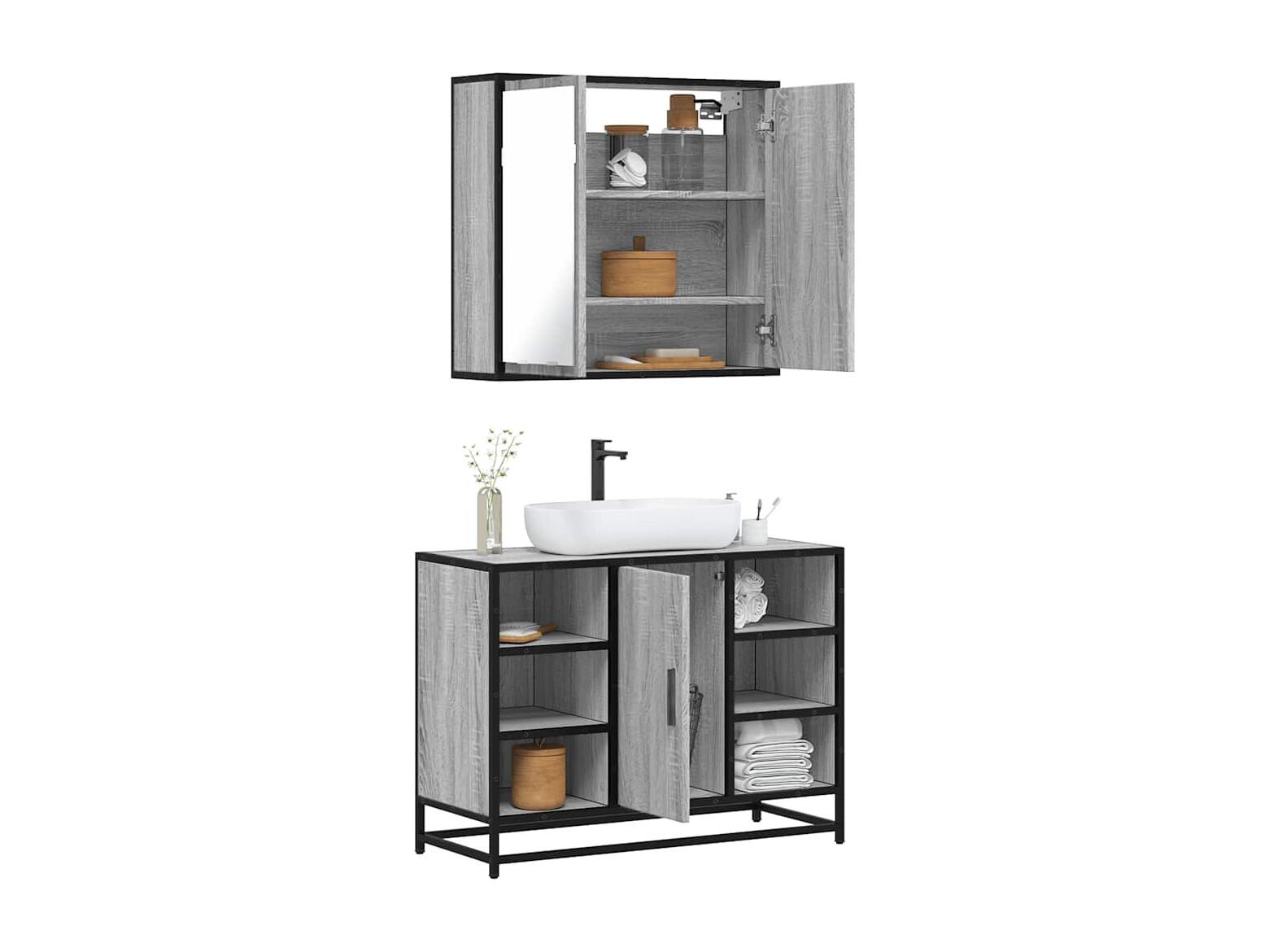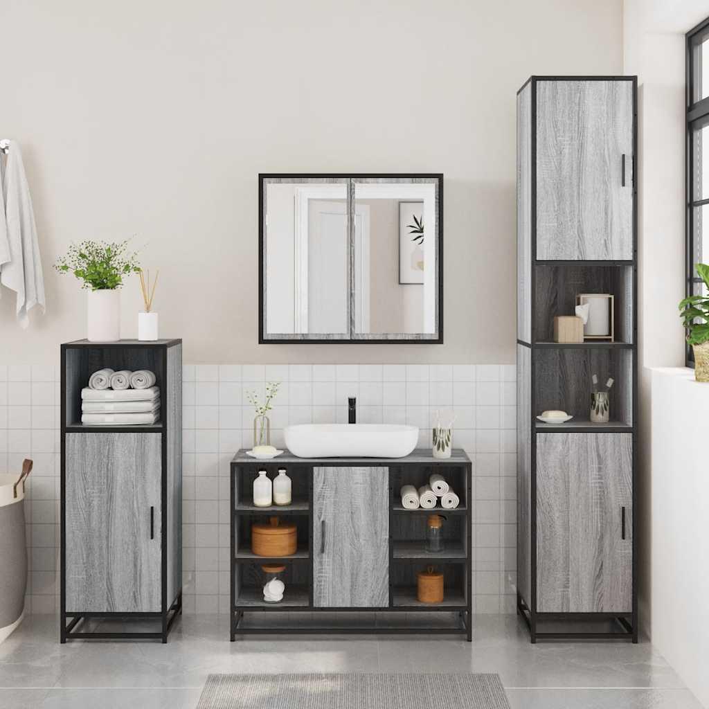 Ensemble de meubles de salle de bain 2 pcs Sonoma gris